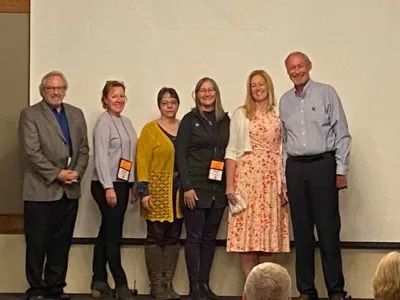 Left to right: Michael Marsh, Leslae Dalpiaz, Vicki Evans, Leah Tietz, Nelly Nicol, and Peter Van Nice. Not in the picture: Ethan Heverly and Charlie Smith.