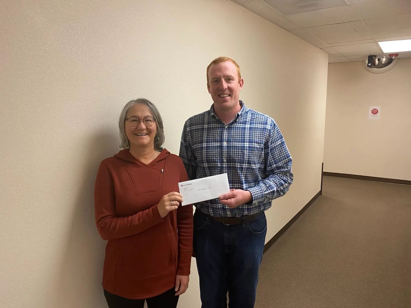 Kids Chance of Montana new President Leah Tietz was presented a grant for $10,000, by Andy Garland, Director of Communications at Montana Rail Link in conjunction with the Washington Foundation.